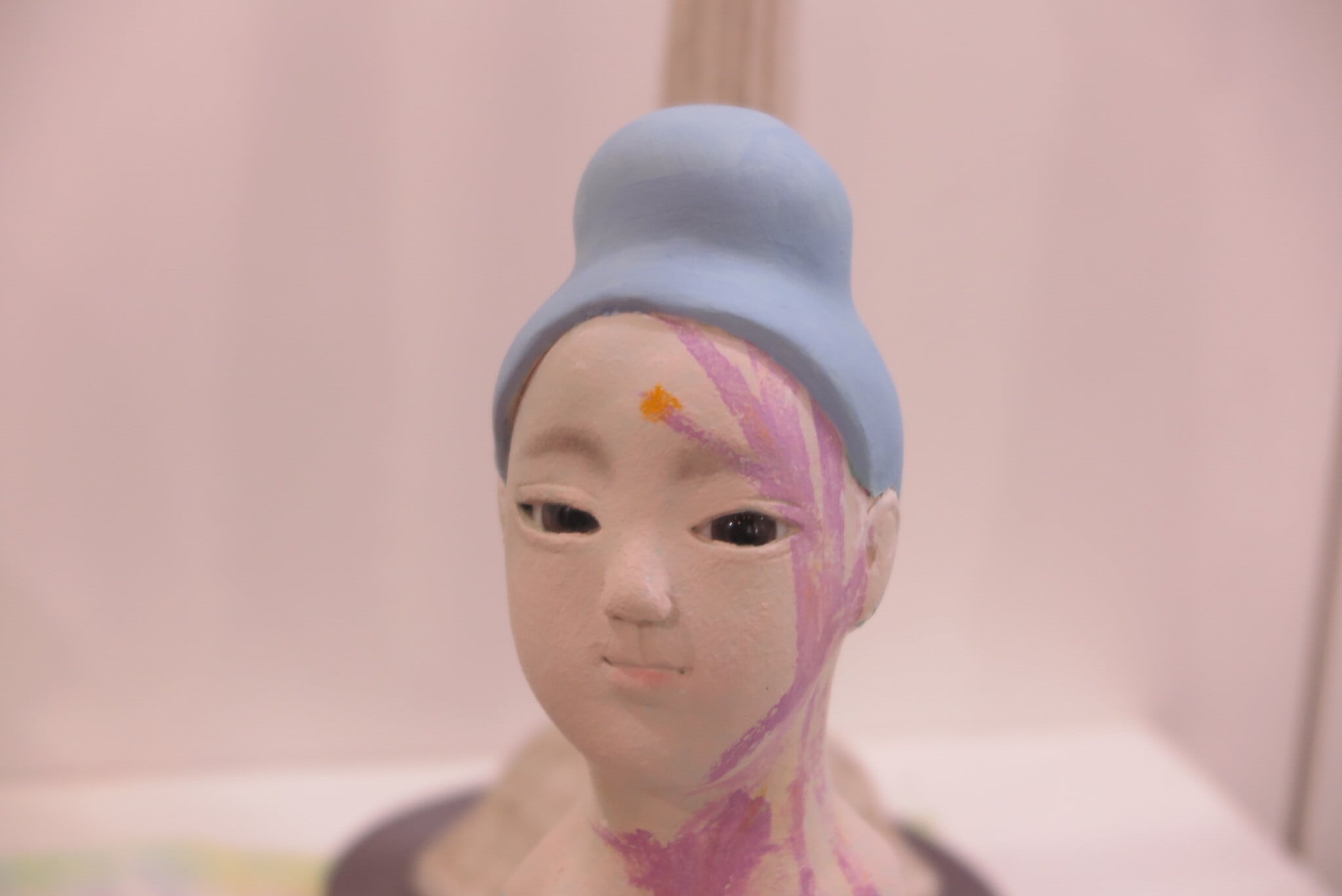 石塑粘土、アクリルガッシュ、グラスアイ