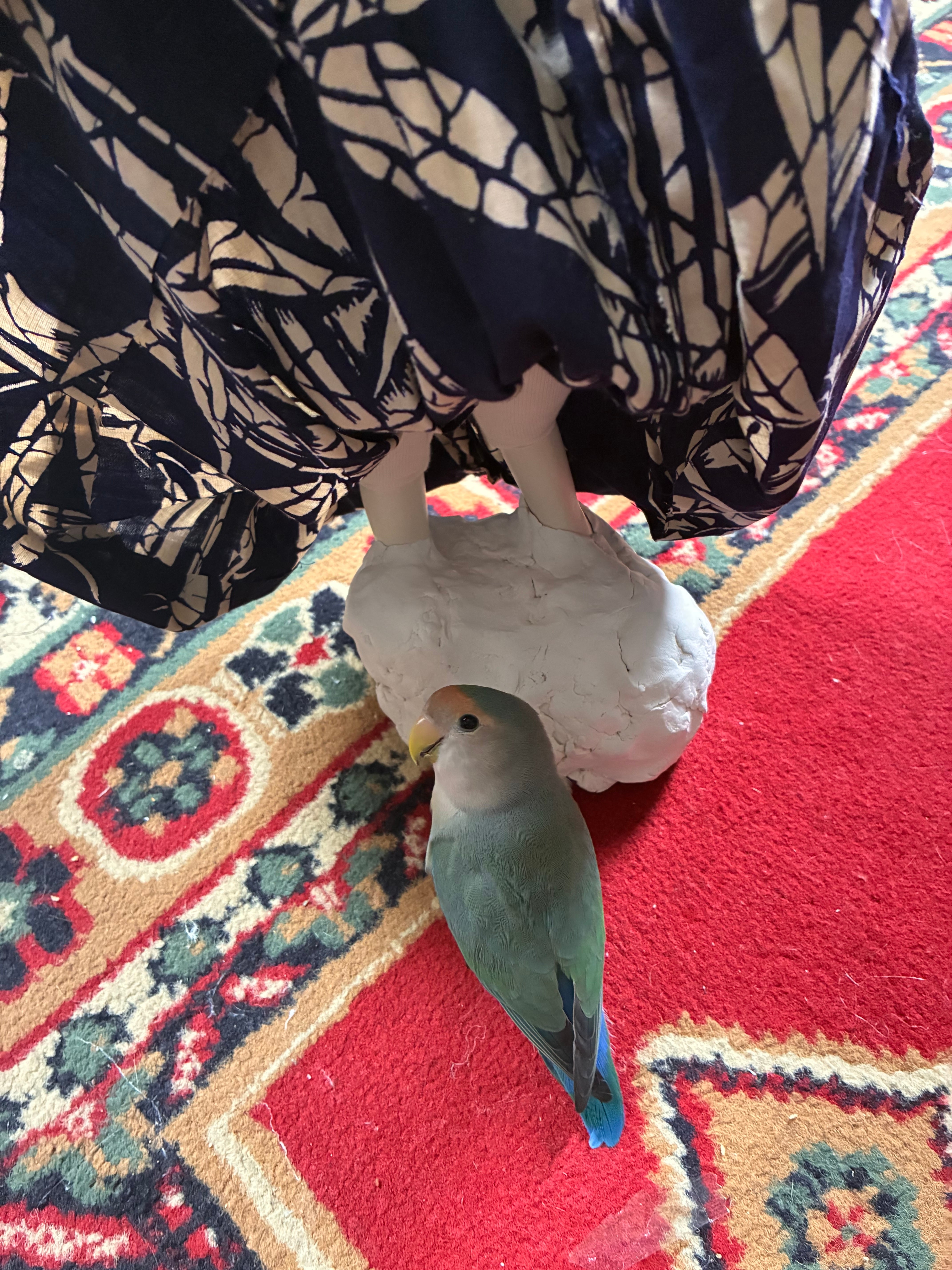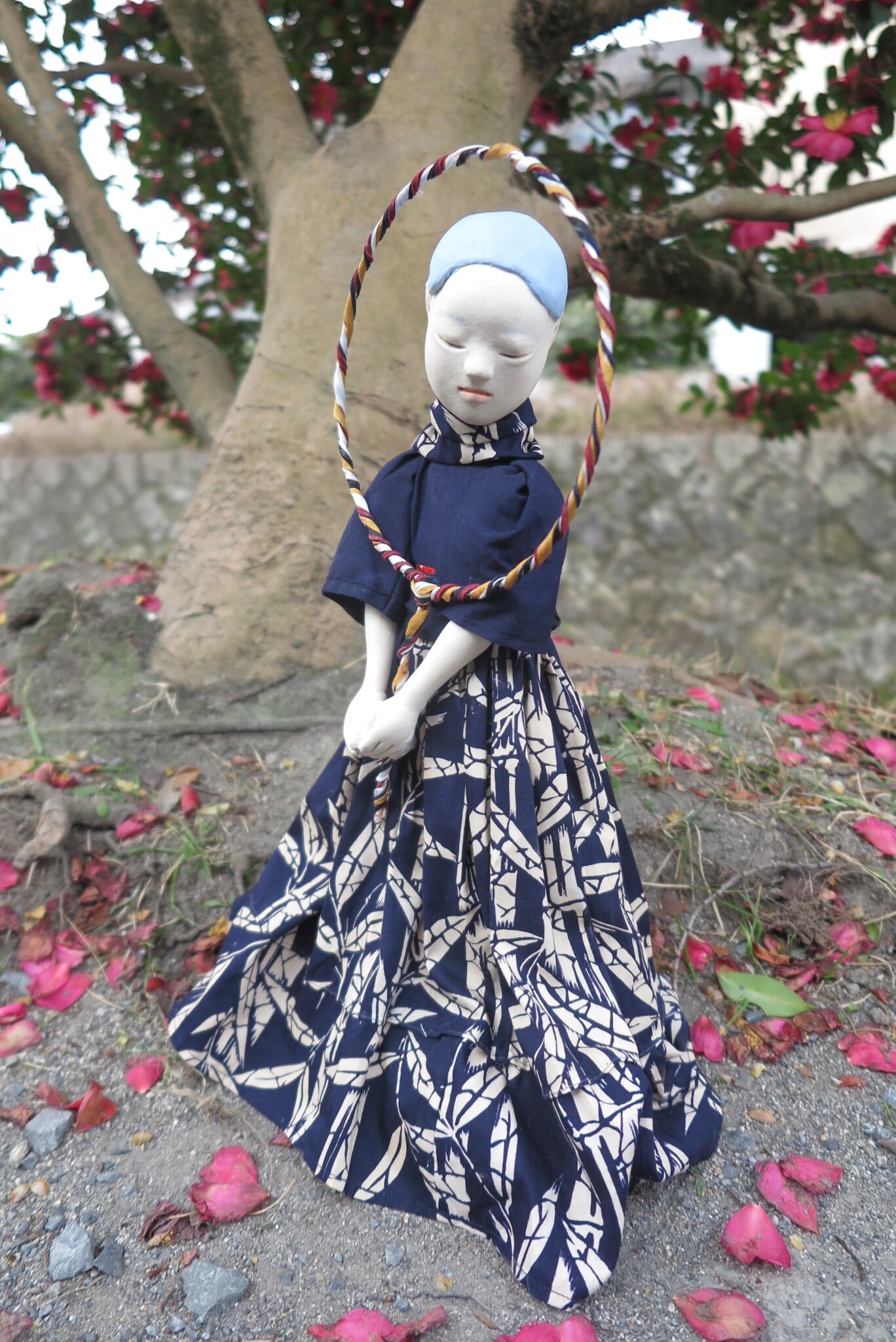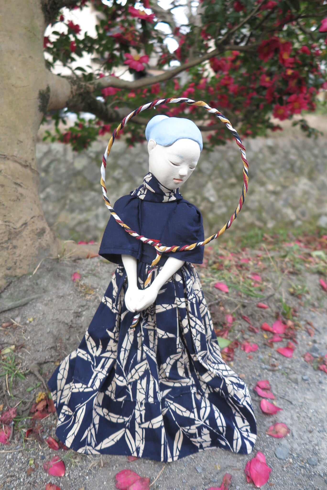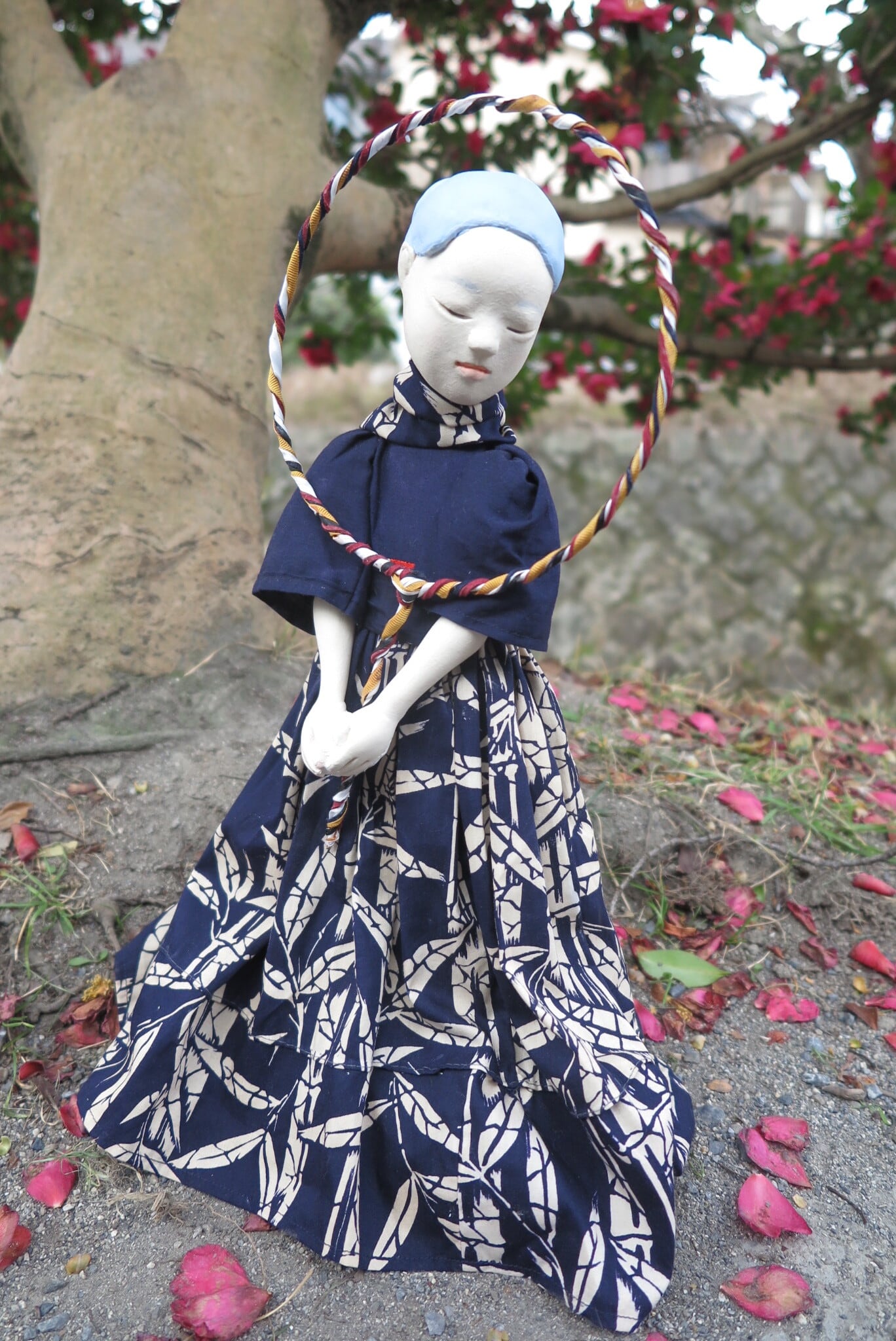 Materials: Old kimono fabric, wire, acrylic gouache