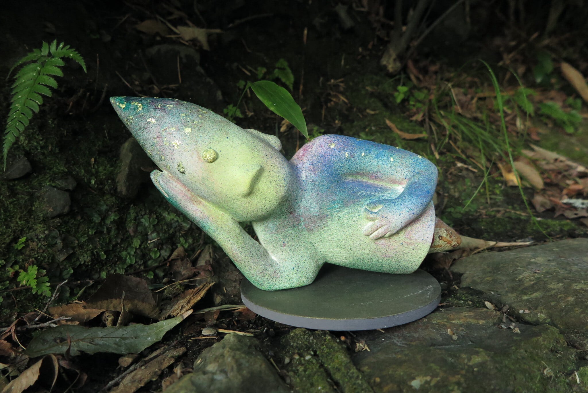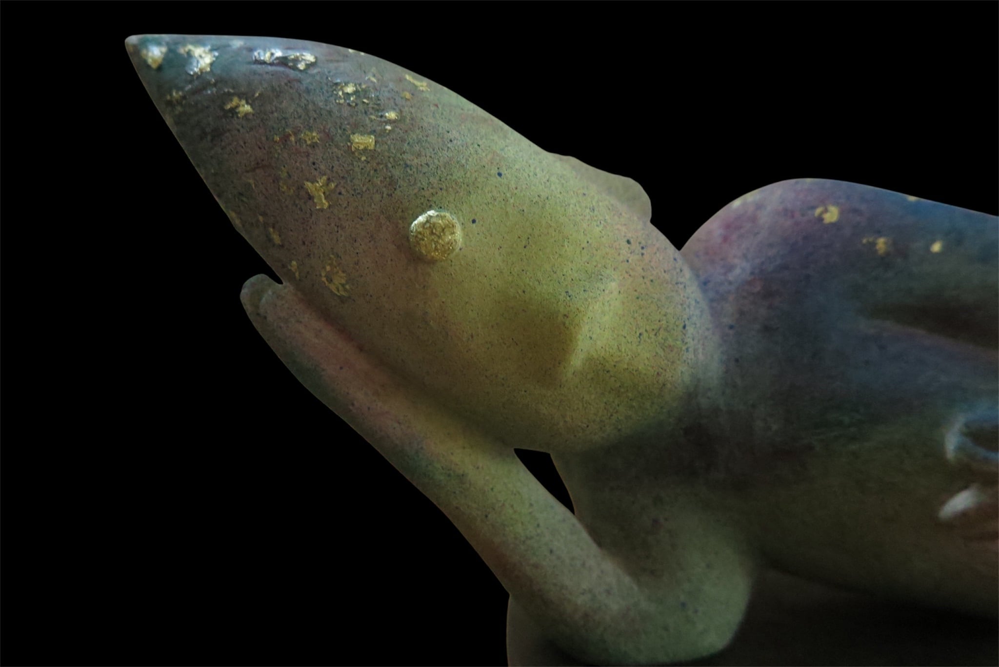 Materials Stoneware clay, Gofun white pigment, Gold leaf, Acrylic
